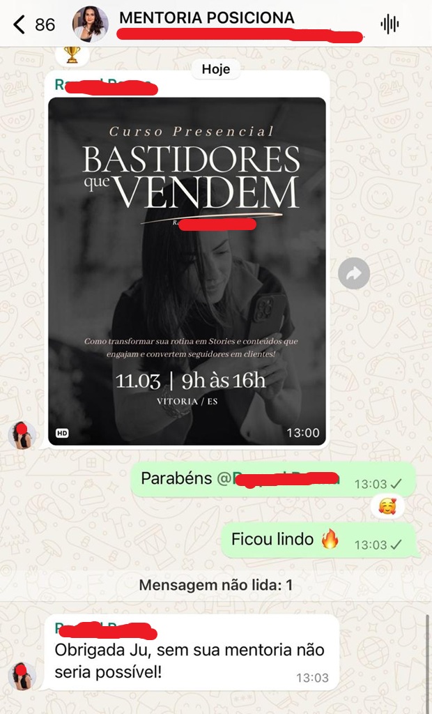 Hoje, fatura múltiplos 6 dígitos, é Embaixadora da Eduzz e já ajudou centenas de mulheres a venderem com verdade, clareza e autoridade.